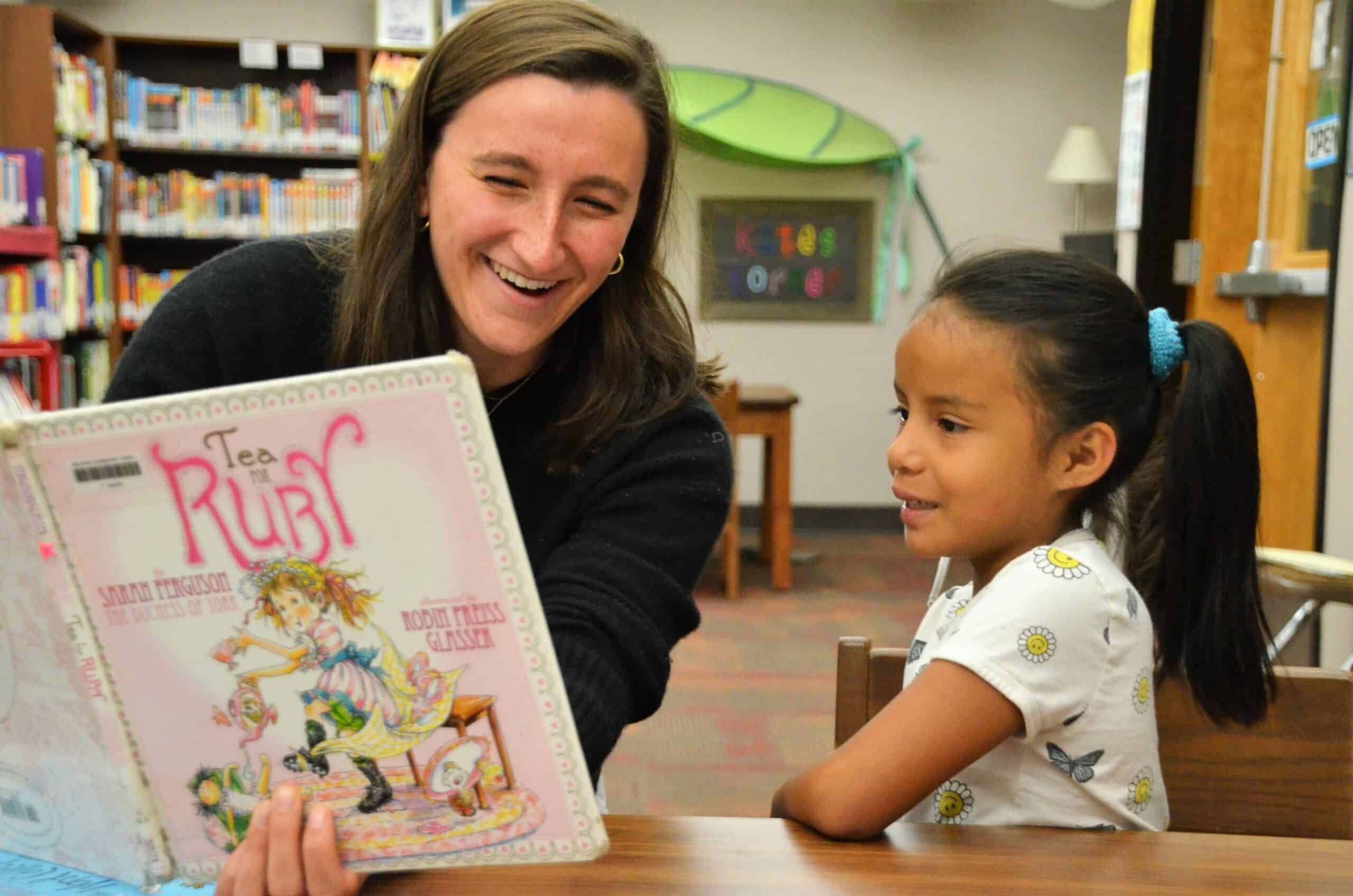 Pictured above: A student works with her tutor during Lee Pesky Learning Center’s literacy segment.[/vc_column_text][/vc_column][/vc_row]